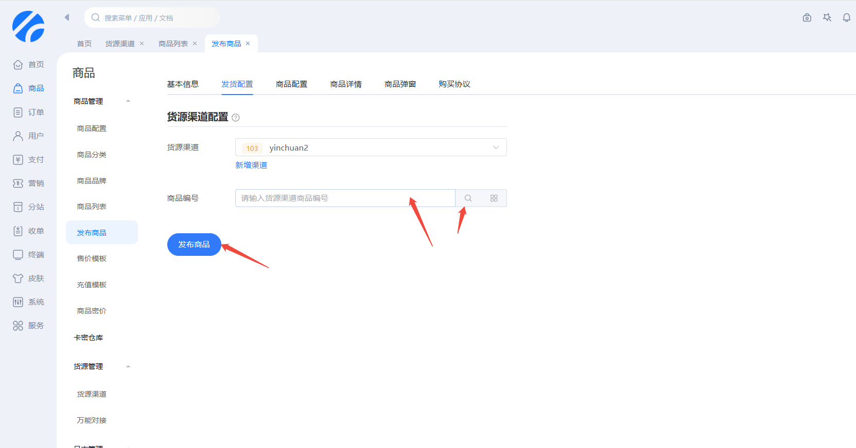 卡商云对接YInchuan2渠道(对接其他没有商品列表的渠道系统同理)