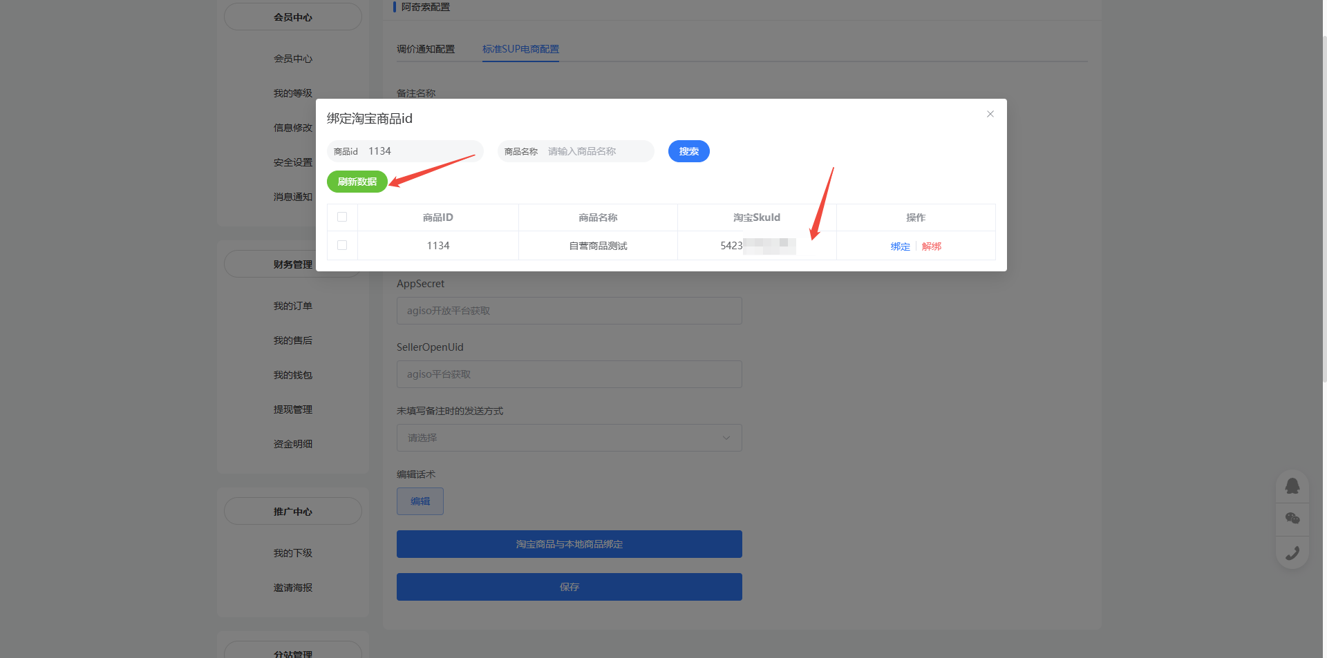 本地商品与阿奇索淘宝商品进行绑定